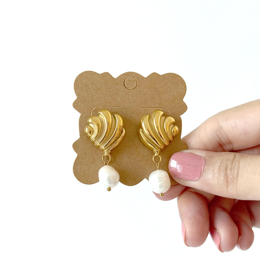 Elevate your elegance with these expertly crafted dangling pearl earrings featuring shell-shaped freshwater pearls. Set on durable stainless steel and enhanced with a gold plating, they offer both lasting beauty and hypoallergenic wear. Perfect for adding a refined touch to any ensemble, these earrings combine natural charm with expert design for timeless sophistication.