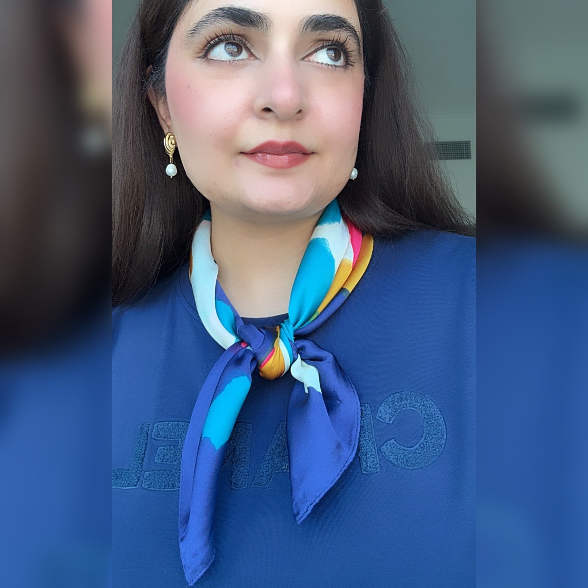 Elevate your ensemble with this silk scarf featuring a striking abstract design in hot pink, electric blue, and mustard. Crafted from high-quality silk, it offers a smooth, luxurious feel while adding a vibrant pop of color and artistic flair to any outfit. Perfect for professionals seeking a sophisticated yet bold accessory.