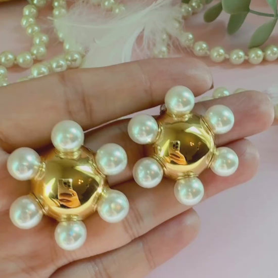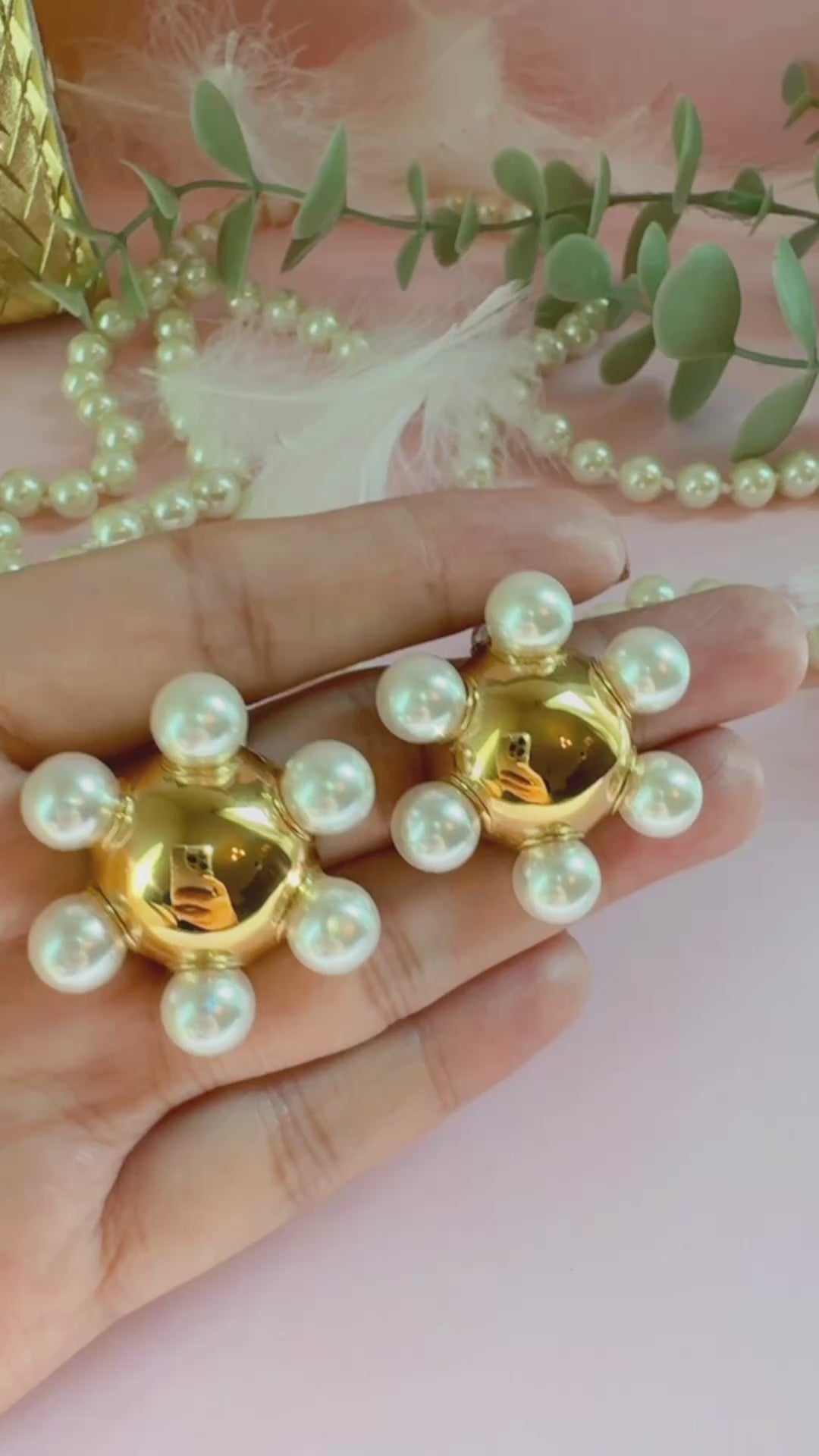 Crafted from gold-plated stainless steel, these Sun Pearl Earrings combine durability with elegance. The sun-shaped design adds a distinctive, radiant touch, while the pearls provide subtle sophistication.